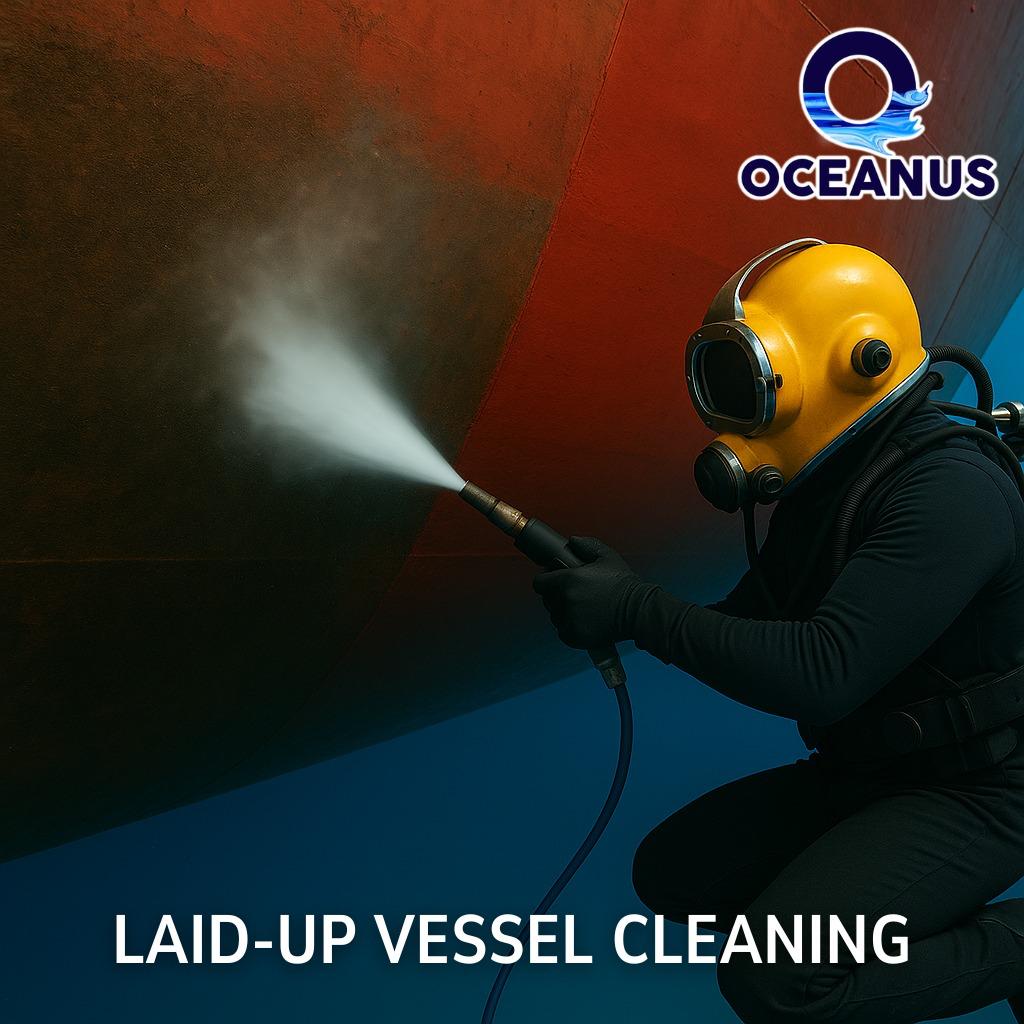 Oceanus Marine offers laid-up vessel cleaning in Singapore. Expert diving company for underwater hull cleaning, ROV services & marine inspections worldwide.
