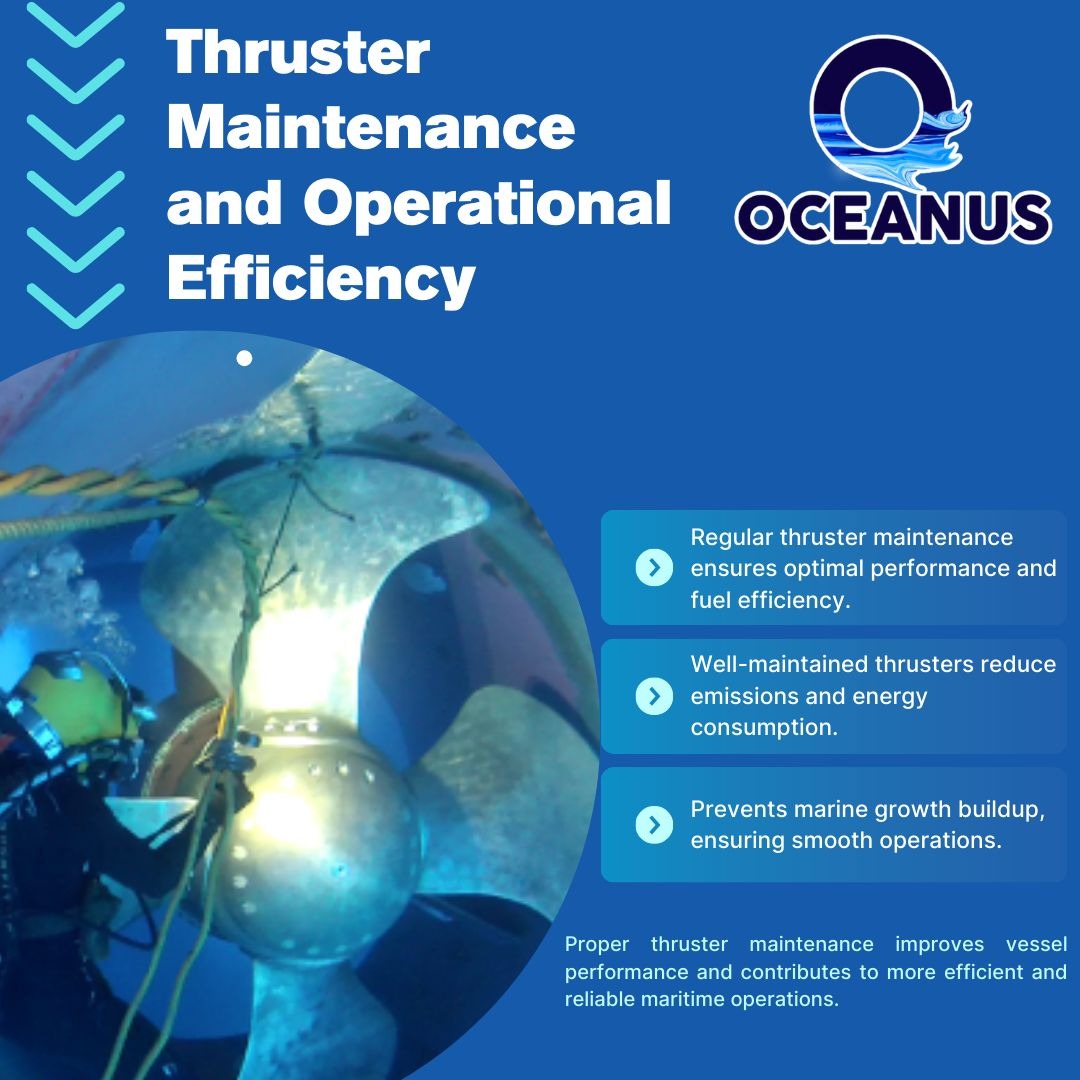 In the high-stakes world of maritime operations, every component counts and your vessel’s thrusters are no exception. These essential systems play a critical role in maneuverability, fuel efficiency, and overall performance. At Oceanus Marine, we specialize in keeping your thrusters in top condition with services such as underwater propeller polishing, underwater hull cleaning, and marine vessel inspection and surveys, ensuring smooth operations from port to port.